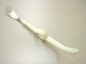 ウィル2 フォーク 管理番号103 特徴リング部に指を通すことにより,食べ物を刺したり,切りやすくしたり等力の入りやすい構造です.握り柄は形状記憶ポリマーにより,熱湯に入れて手に合わせて自在に変形できます. 備考代替品:ウイルシリーズ フォーク 適用食事調理用具