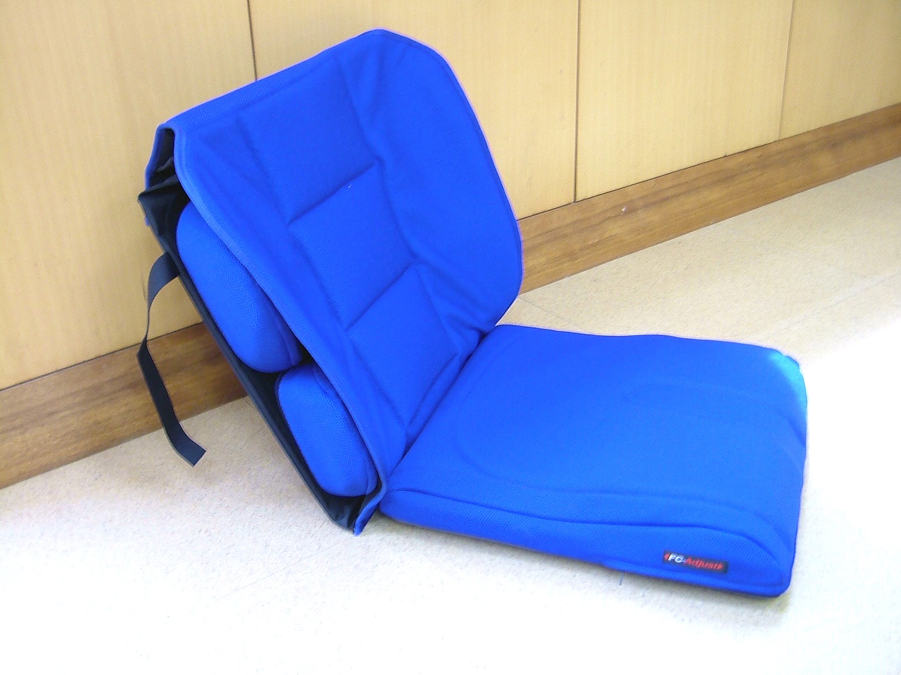 FCアジャスト(背+座+骨盤パッド+サイドパッド) メーカー:株式会社舟木義肢 入手先:アイ・ソネックス株式会社 特徴:座クッションはアンカー構造を持ち、大腿パッドの着脱で、足駆動をする方にも対応する。背クッションは座位を保持するための骨盤パッド、体幹パッドがあり、体型に合わせて取付け位置が利用者に合わせて調整できる。