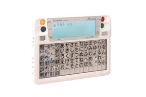 - 身体が不自由で会話や指差し等の手段で周囲の方と意思疎通が困難という方が、身体の僅かに動く部位を使って文章を作成する装置です。自分の身体に合った入力スイッチをタイミングを取りながら繰り返し「押す/離す」を繰り返すだけで文章を作成することができるので、言語障害と上肢障害の両方の障害を持つ方に適しています。